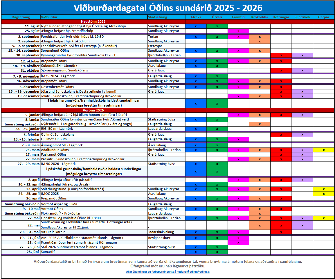 SSÍ - Sundmót og atburðardagatal